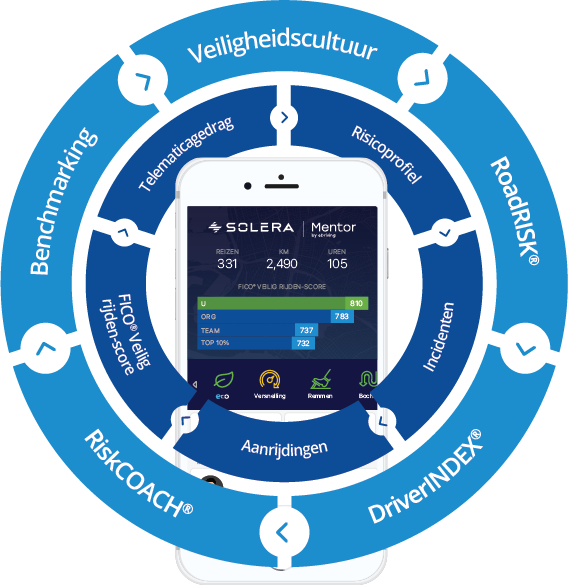 De bekroonde app MentorSM van eDriving is een combinatie van onze gepatenteerde2 methodologie voor risicobeperking Crash-Free Culture®, aangeboden via ons sterk beveiligde platform waarbij privacy op de eerste plaats komt. Onze oplossing wordt ondersteund door ongeëvenaarde zakelijke diensten en een unieke smartphone-app die niet alleen riskant gedrag identificeert, maar het ook verhelpt met microtrainingen en coaching in de app zelf. Verder worden bestuurders en managers ondersteund met ongeëvenaarde professionele diensten.